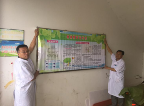 北環(huán)醫(yī)院張慶華副院長和醫(yī)務(wù)科的牛曉寧主任一起將健康教育宣傳欄換成新制作的,內(nèi)容有“愛眼健康歌”、“正確做眼保健操”、“中暑的急救方法”等。